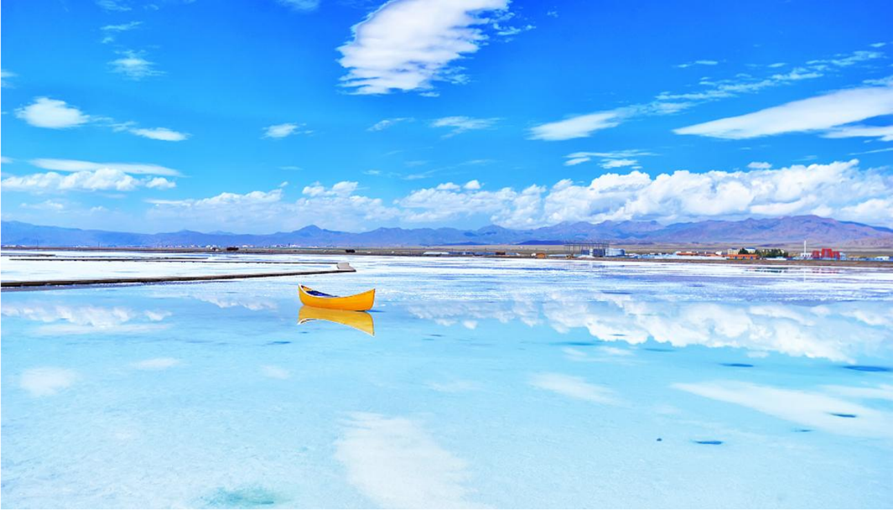 蒙古族藏族自治州烏蘭縣茶卡鎮(zhèn)附近,被稱為“天空之鏡”,就像天空的一面鏡子,藍(lán)天、白云、船只、人影都可以倒映其中。在這里時(shí)間仿佛靜止