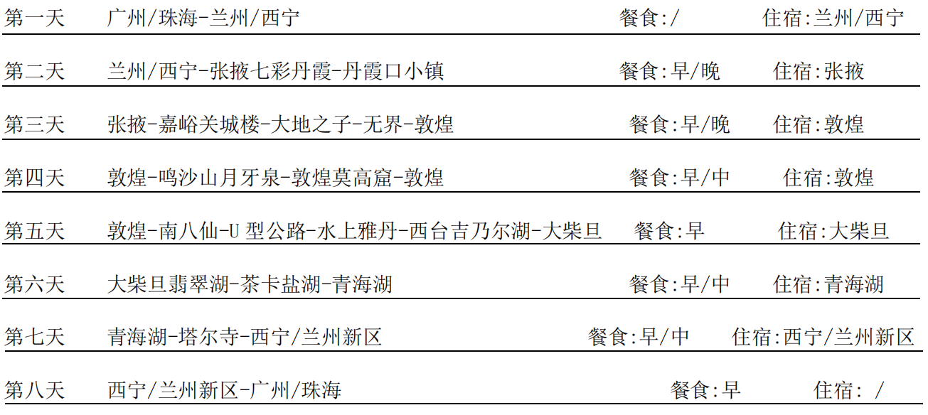 早餐:已含 午餐:已含 晚餐:自理 住宿:西寧/蘭州