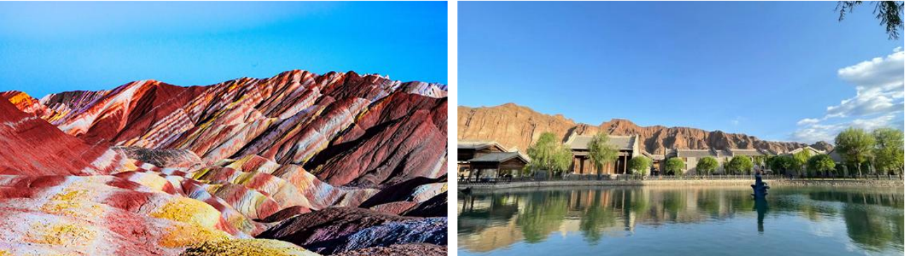 早餐后乘車前往張掖臨澤游覽“世界十大神奇地理奇觀”—【張掖丹霞地質(zhì)公園, 含區(qū)間車游覽約 2 小時(shí)】,它是世間上少有的水色胭脂,沒(méi)有碧海藍(lán)天、高原綠地那般景致,卻有如畫般景色。國(guó)內(nèi)唯一丹霞地貌與彩色丘陵景觀高度復(fù)合區(qū),以氣勢(shì)磅礴、形態(tài)豐富、色彩班斕而稱奇,具有極高的觀賞價(jià)值和重要的科考價(jià)值。姜文執(zhí)導(dǎo)的電影《太陽(yáng)照常升起》、張藝謀的《三槍拍案驚奇》、錢雁秋編導(dǎo)的電視連續(xù)劇《神探狄仁杰(第三部)》等影片均把該景區(qū)作為外景拍攝地。享有“中國(guó)最美的七大丹霞地貌”的美譽(yù)。特別安排游覽有著“夢(mèng)回絲綢之路,一結(jié)千年文化“之稱的【張掖丹霞口旅游度假小鎮(zhèn)】,品嘗正宗的西北特色手工美食、體驗(yàn)甘肅本地民俗及人文歷史、感受靈動(dòng)而富有民族特色的絲路演藝秀,在小鎮(zhèn),你將享受到多方位演繹視覺(jué)盛宴,與各種街頭氛圍演藝、特色巡游不期而遇。前往入住當(dāng)?shù)鼐?/span>店。