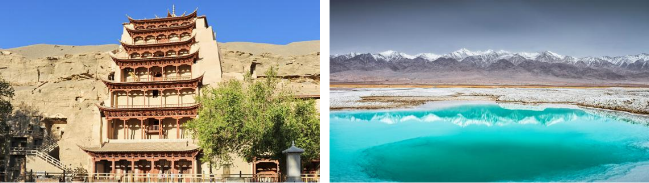 張掖七彩丹霞、丹霞口小鎮(zhèn)、鳴沙山月牙泉、莫高窟、翡翠湖、南八仙、U 型公路、水上雅丹、西臺(tái)吉乃爾湖、茶卡鹽湖、青海湖、